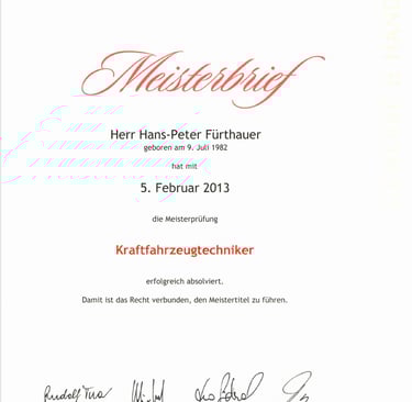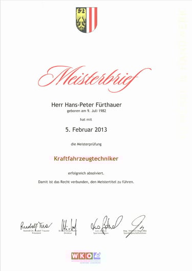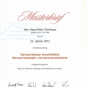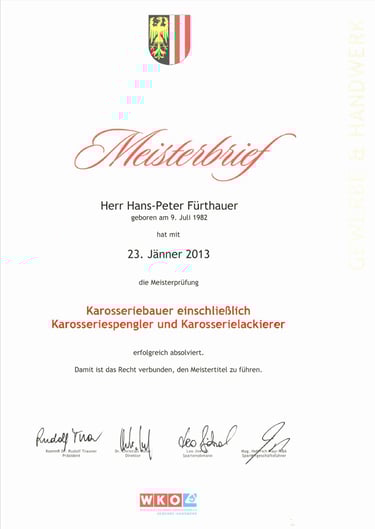 Meisterbrief WKO OÖ "Karosseriebauer"